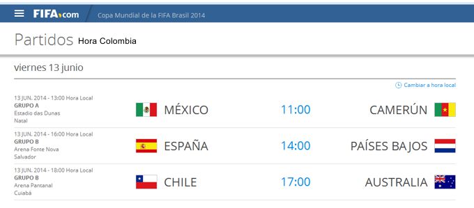 Horarios de los eventos deportivos y más sobre quién juega hoy . Todos los horarios de los partidos por tv de hoy en vivo. Ver toda la prensa de hoy. Horarios de partidos del fútbol colombiano y . Todos los horarios de partidos de fútbol transmitidos en vivo por televisión en perú.